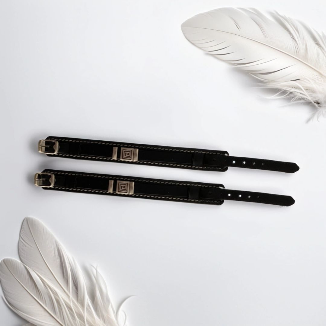 PULSERA DE CUERO REALIZADO CON PIEL DE VACUNO NEGRO. CON HEBILLA Y DETALLES PLATEADOS.
