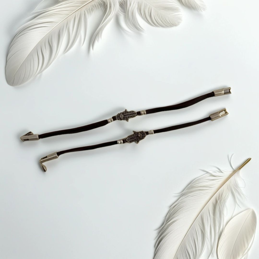 PULSERA DE CUERO REALIZADO CON PIEL DE VACUNO NEGRO. CON DETALLES PLATEADOS.